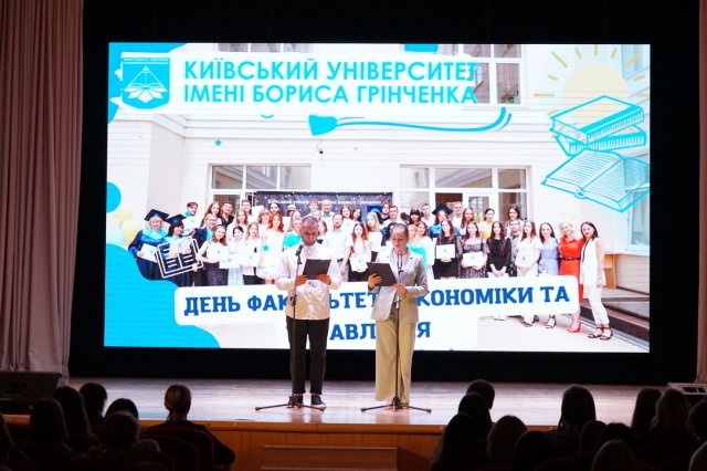 Співробітники ФЕУ отримали заслужені нагороди та визнання за їхню важливу роботу в галузі економіки та управління від почесних гостей свята: Бондаренко Володимир Володимирович – заступник міського голови, секретар міської ради, Київської міської ради від Шевченківського району м. Києва нагородив Подякою Київського міського голови співробітників ФЕУ. А Фіданян Олена Григорівна – директор Департаменту освіти і науки вітала колег Грамотою Департаменту освіти і науки.
