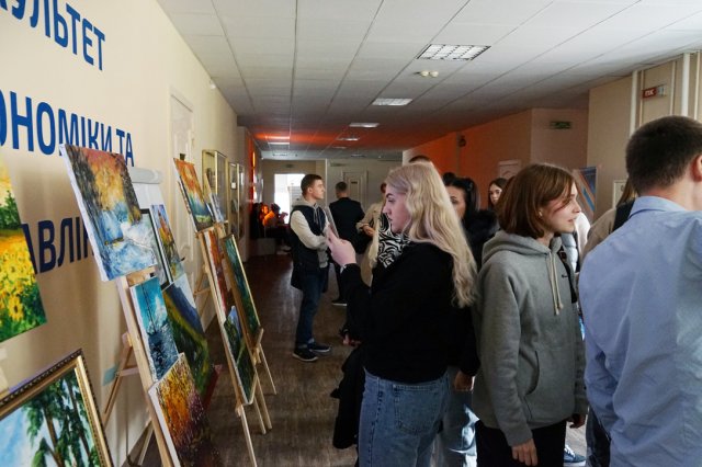 Відкриття Виставки творчих робіт студентки 2 курсу спеціальності Менеджмент Берези Лани, завідувача кафедри міжнародної економіки Алли Шлапак, професора кафедри міжнародної економіки Валерії Лойко та Оксани Казак, заступника декана ФЕУ, доцента кафедри фінансів – вразило багатогранністю та талантом авторів не лише у звичних для всіх економічних та фінансових аспектах, а й відкрило їхні особистості з боку їхніх творчих успіхів .
