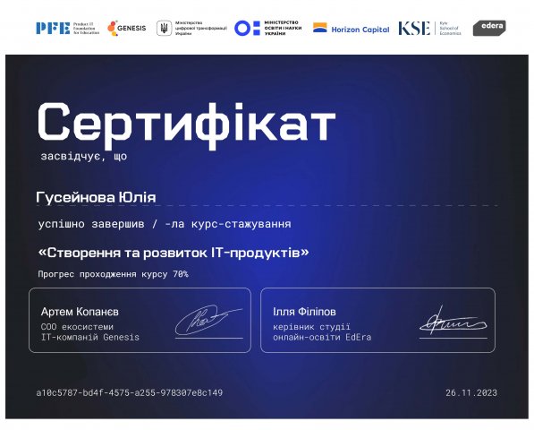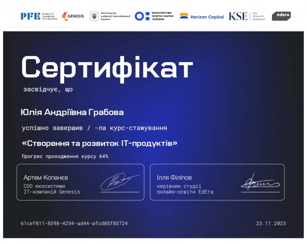 Здобувачі 2 курсу ОП «Реклама і зв’язки з громадськістю» спеціальності «журналістика» в рамках вивчення навчального курсу «Основи бізнес-процесів» апробували адаптований курс неформальної освіти «Створення та розвиток IT-продуктів», який розроблений Genesis та адаптований під мету вказаного навчальної дисципліни в Університеті Грінченка д.е.н., професором кафедри міжнародної економіки Ушенко Н.В. Такий достатньо новітній підхід дозволяє інтегрувати у навчальний процес адаптовані навчальні частини та урізноманітнити освітню діяльність здобувачів в рамках формування запланованих компетентностей та практичних результатів навчання.