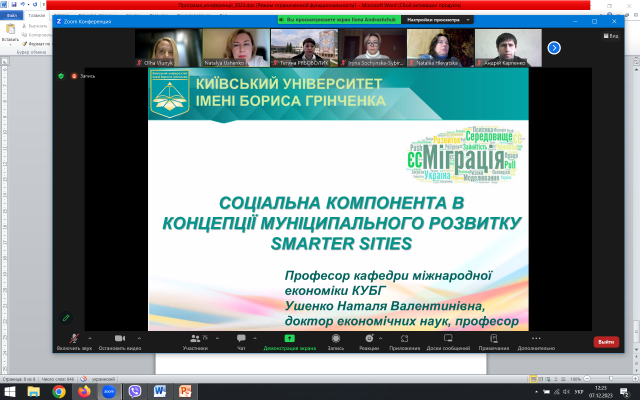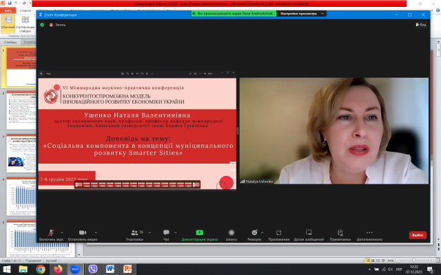 У пленарному засіданні конференції на запрошення оргкомітету прийняла участь доктор економічних наук, професор кафедри міжнародної економіки Київського університету імені Бориса Грінченка Ушенко Наталя. Була представлено результати дослідження «Соціальна компонента в концепції муніципального розвитку Smarter City». Доповідь розкривала суспільно значимий потенціал впровадження технологій Smart City для поліпшення якості життя мешканців міських агломерацій, передумови переходу до відкритої до постійних змін і комплексного оновлення концепції Smarter City, векторів вдосконалення системи місцевого самоуправління на основі використання можливостей цифровізації у контексті повоєнного відновлення та відбудови України.