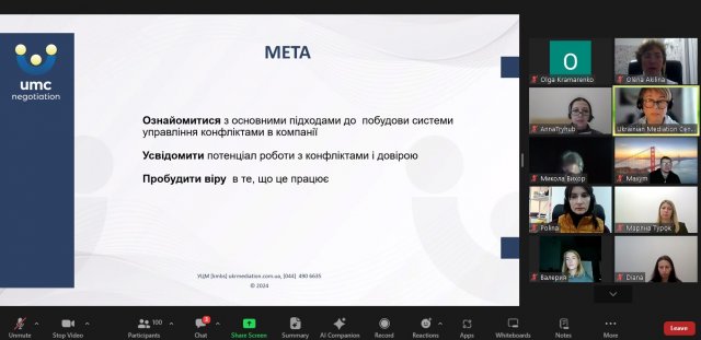 Цінні знання, здобуті під час онлайн-заходу Українського Центру Медіації, значно розширюють розуміння завдань, пов'язаних з підготовкою сучасних менеджерів до ефективного вирішення конфліктів та впровадження навичок ненасильницького спілкування.