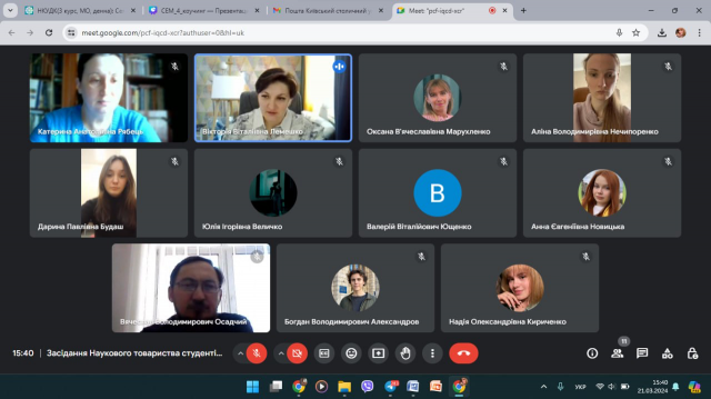 21 березня 2024 р. відбулося засідання Наукового товариства студентів, аспірантів і молодих вчених Факультету економіки та управління. Голова Наукового товариства ФЕУ В.В. Лемешко висвітлила План наукових заходів студентів, аспірантів та молодих вчених ФЕУ на 2024 р., окреслила організаційні аспекти на найближчу перспективу. Декан ФЕУ, доктор педагогічних наук, професор В.В. Осадчий підтримав наукові ініціативи членів НТ.