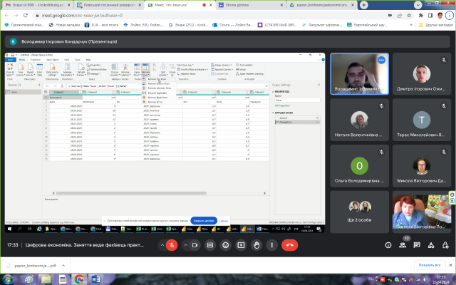 Аспіранти задавали запитання, обговорювали можливості використання аналітичної системи Power BI при проведенні наукових досліджень за темами своїх дисертацій. Вирішили продовжити співпрацю і зустрітися ще раз на практичних заняттях з цієї навчальної дисципліни. Наприкінці заняття подякували Володимиру Ігоровичу за приділений час та цікаву інформацію.