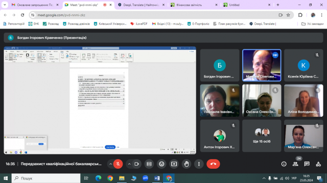 23.05.2024 року на кафедрі фінансів відбувся попередній захист Кваліфікаційних робіт бакалаврів. Студенти спеціальності 072 "Фінанси, банківська справа і страхування" представили свої результати досліджень та доповіли про стан готовності кваліфікаційних робіт до захисту. Усі здобувачі успішно пройшли цей етап і рекомендовані до захисту.