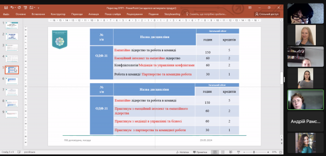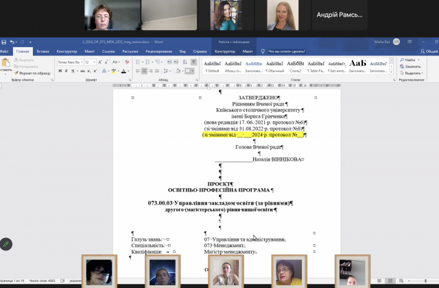 5 червня 2024 року на Факультеті економіки та управління відбулося засідання Ради випускників, яке розпочалося з відкриття засідання та затвердження порядку денного. Основними питаннями порядку денного були обговорення та затвердження змін до освітньо-професійних програм (ОПП) різних рівнів та напрямків, а саме: