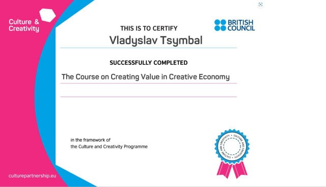 Здобувачі вищої освіти отримали сертифікати та підтвердили рівень набуття відповідних компетентностей, що загалом мають міждисциплінарний характер із креативної економіки.