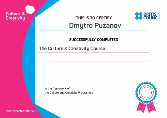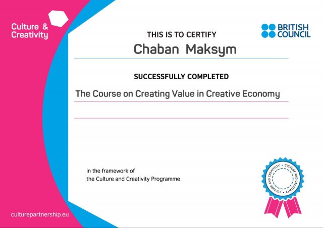 У рамках вивчення вибіркової освітньої компоненти «Креативна економіка» здобувачі другого (магістерського) рівня спеціальності 051 «Економіка», освітньої програми «Міжнародна економіка» пройшли курси із неформальної освіти, зокрема: «Курс культура і креативність»; Курс із програми «креативна Європа».