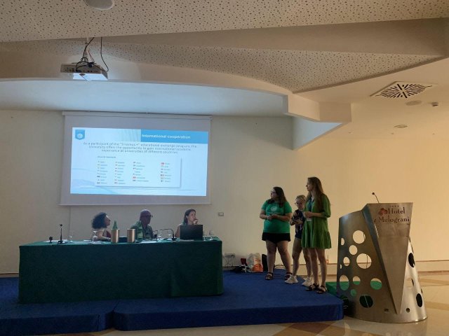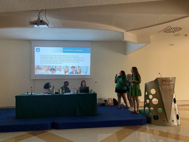 29 червня 2024 р. у місті В’єста (Італія) в рамках міжнародного заходу International Week, організатором якого виступив Університет Фоджа (Італія), аспірантки нашого університету Лойко Єлизавета (спеціальність 051 Економіка), Катеринич Анна (спеціальність 231 Соціальна робота) та Широкова Ірина (спеціальність 061 Журналістика) представляли наш Університет для 265 учасників із 15 країн світу. Аспірантки розповіли про кількість програм підготовки бакалаврів, магістрів та докторів філософії, про інтернаціональні зв’язки Університету, про те, що Університет отримав міжнародне визнання через приєднання до Великої хартії університетів, Міжнародної асоціації університетів (IAU) та Європейської асоціації університетів (EUA). Також розповіли, що Університет активно реалізує спільні проекти з міжнародними організаціями, такими як Європейська комісія, Світовий банк, Co-Serve International, а також Британська Рада в Україні, Альянс сприяння програмі зовнішнього тестування (USETI), Програма імені Фулбрайта в м. Україна, Американські ради з міжнародної освіти (Україна). Як учасник програми освітнього обміну «Erasmus+», Університет пропонує можливість отримати міжнародний академічний досвід в університетах різних країн. Учасники тижня International Week із зацікавленістю слухали інформацію, задавали запитання, виказували підтримку як нашим аспіранткам, як представникам Університету, так і всім українцям.