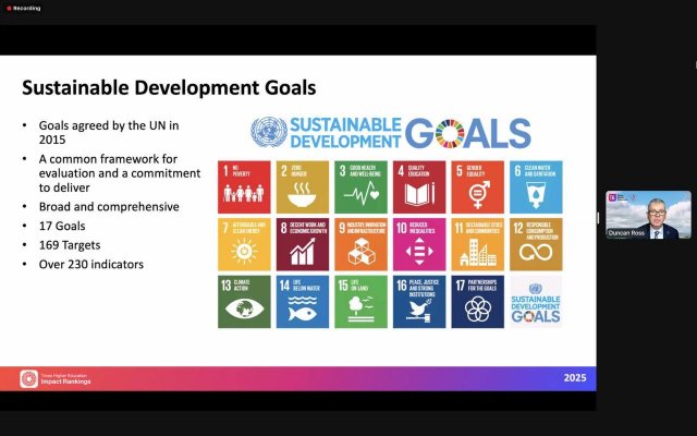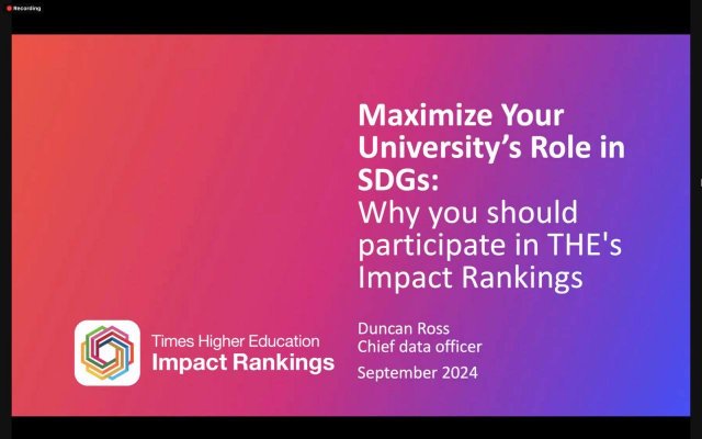 3 вересня 2024 року викладач кафедри міжнародної економіки Факультету економіки та управління Київського столичного університету імені Бориса Грінченка Никонюк Катерина Олегівна взяла участь у першій сесії серії майстер-класів від Times Higher Education «Як максимізувати роль вашого університету у досягненні цілей сталого розвитку (ЦСР): Чому варто брати участь у рейтингу «THE`s Impact Rankings».