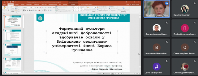 20 вересня 2024 р. відбувся семінар зі здобувачами 1 курсу ОПП «Міжнародна економіка» з академічної доброчесності. Професор кафедри міжнародної економіки, доктор економічних наук, професор Лойко Валерія Вікторівна обговорила зі здобувачами освіти положення закону України «Про освіту», зокрема статтю 42 «Академічна доброчесність», питання, які містяться у «Положенні про академічну доброчесність науково-педагогічних, наукових, педагогічних працівників та здобувачів вищої освіти Київського столичного університету імені Бориса Грінченка». Дискутували з приводу можливих випадків прояву академічної недоброчесності і видів плагіату та норм академічної відповідальності, до якої можуть бути притягнені здобувачі вищої освіти за порушення академічної доброчесності. Здобувачі освіти обговорили питання ефективності використання різних ресурсів по перевірці на плагіат текстів статей або тез доповідей на конференціях. Розглянули можливості систем перевірки тексту кваліфікаційної (магістерської) роботи на текстові збіги за допомогою систем Unicheck та Strike Plagiarism, які використовуються у Київському столичному університеті імені Бориса Грінченка.
