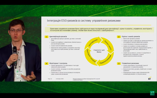 Володимир Середа, директор із забезпечення закупівельної діяльності, адміністрування та управління нерухомістю UKRSIBBANK BNP Paribas Group, поділився практичними прикладами інтеграції ESG.
