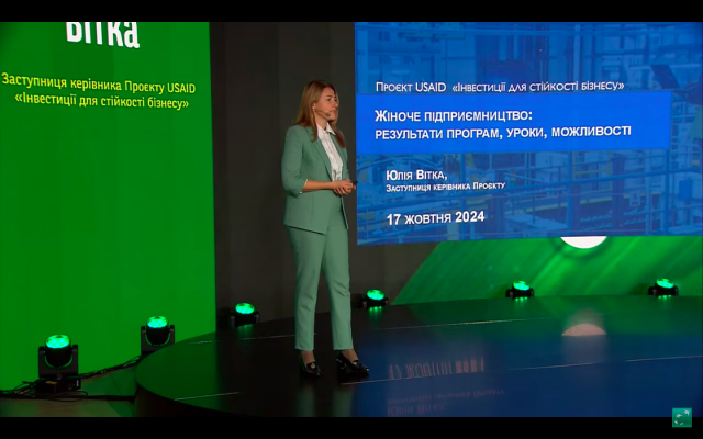 Юлія Вітка, заступниця керівника Проєкту USAID «Інвестиції для стійкості бізнесу», поділилася стратегіями залучення інвестицій для сталого розвитку.