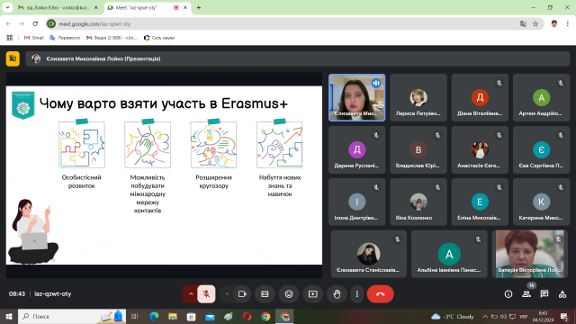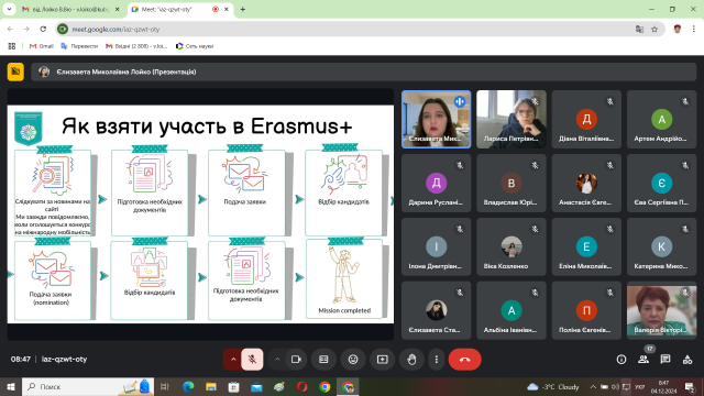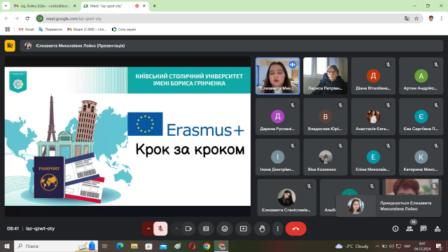 4 грудня 2024 р. відбулась гостьова лекція менеджера-асистента Еразмус офісу Університету Фоджа (Італія) Лойко Єлизавети на тему «Еразмус + Крок за кроком» для здобувачів освіти спеціальності 075 «Маркетинг». Єлизавета розповіла здобувачам освіти про програми академічної мобільності «Erasmus +», які доступні для бакалаврів, підкреслила особливості програм, обґрунтувала, чому доцільно прийняти участь здобувачам освіти у такій програмі, підкреслила необхідність знання іноземної мови. Єлизавета розповіла про особливості при заповненні необхідних документів для участі у програмах академічної мобільності, термінах їх подачі. Звернула увагу здобувачів освіти на інформацію, яку бажано розповісти про себе при написанні Мотиваційного листа, підкреслила особливості заповнення CV Europass. Єлизавета висвітлила найбільш типові помилки, які допускають здобувачі освіти при заповнені документів та підготовці до академічної мобільності. Єлизавета розповіла про фінансову підтримку здобувачів освіти під час здійснення академічної мобільності, умовах проживання, мобільних додатках, які допоможуть побудувати маршрут до європейського університету. В гостьовій лекції було розглянуто питання психологічної адаптації студента, який перебуває в іншій країні за програмою академічного обміну Еразмус +, було виділені часові періоди виникнення психологічних криз і надані практичні поради щодо їх подолання. Наприкінці лекції Єлизавета подякувала за увагу та запросила здобувачів освіти до співпраці.