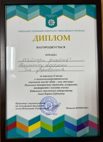 І місце за результатами квесту здобула команда Факультету економіки та управління у складі першокурсниць Горобець Анастасії Максимівни (спеціальність «Маркетинг»); Лук’янюк Аніти Дмитрівни (спеціальність «Маркетинг»); Співак Ангеліни Олександрівни (спеціальність «Менеджмент»); Шишко Єлизавети Станіславівни (спеціальність «Маркетинг»).