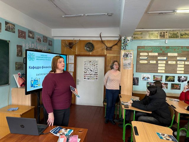 З 4 по 6 лютого 2025 року представники Факультету економіки та управління Університету Грінченка, зокрема доценти кафедри міжнародної економіки Олександр Юрченко, кафедри управління Олена Акіліна, кафедри фінансів Людмила Васечко та старший викладач кафедри міжнародної економіки Лариса Бобер, відвідали навчальні заклади Оболонського (СЗШ №231, СЗШ №211), Шевченківського (СЗШ №95, ліцей «Нивки») та Солом’янського (ліцей №145) районів Києва.