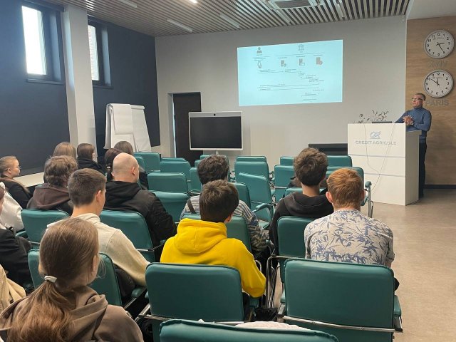 13 травня 2025 року в межах вивчення дисципліни «Інформаційно-комунікаційні технології у фінансах» (викладач – доц. Денис Віровець) для здобувачів освіти 1 курсу спеціальності «Фінанси, банківська справа, страхування та фондовий ринок» була організована виїзна гостьова лекція у головному офісі Креді Агріколь Банку.