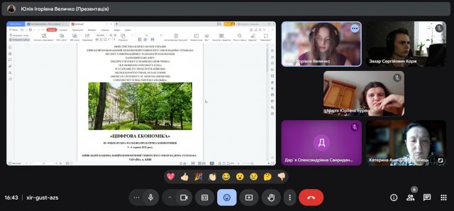 22 травня 2025 р. відбулося засідання Наукового товариства студентів, аспірантів та молодих вчених Факультету економіки та управління. Голова НТ Величко Ю.І. підвела підсумки наукової роботи студентів та аспірантів ФЕУ у 2024-2025 н.р.; зазначила результати участі студентів та аспірантів ФЕУ у Всеукраїнській науково-практичній онлайн конференції «ФІНАНСОВО-ЕКОНОМІЧНИЙ РОЗВИТОК АГЛОМЕРАЦІЙ: ЛЮДСЬКИЙ КАПІТАЛ ТА ІНСТИТУЦІЙНІ ВЕКТОРИ СТАЛОГО РОЗВИТКУ УКРАЇНИ», що відбулася за ініціативи ФЕУ 21 травня 2025 р. Крім того, голова НТ здійснила анонс наукових заходів на червень 2025 р.