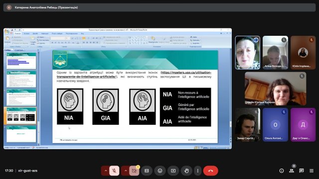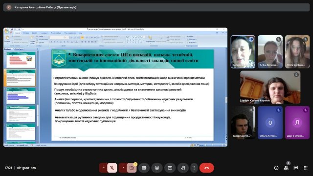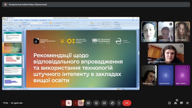 Професор кафедри управління Рябець К.А. провела для членів Наукового товариства науково-практичний семінар «Сучасні виклики та можливості в галузі авторського права», в контексті якого виклала основні поняття та джерела авторського права, а також окремі положення Рекомендацій щодо відповідального впровадження та використання технологій штучного інтелекту в закладах вищої освіти, розроблених Міністерством цифрової трансформації України та Міністерством освіти і науки України (квітень, 2025).