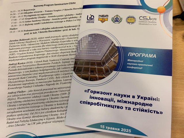 15 травня 2025 року представники науково-педагогічного колективу Факультету економіки та управління Київського столичного університету імені Бориса Грінченка взяли участь у двох міжнародних заходах з нагоди Дня науки в Україні – Міжнародній конференції «Горизонт науки в Україні: інновації, міжнародне співробітництво та стійкість» HNUA 2025 та семінарі «Польща та Україна – наукове майбутнє з погляду сучасної економічної перспективи» (Польща, м. Варшава). Наукові заходи організовані Центром українських студій Варшавської школи економіки та Фундацією «Українська наукова діаспора в Польщі» з нагоди Дня науки в Україні в межах ініціатив Міністерства освіти і науки України.