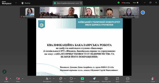 17-18 червня 2025 року на кафедрі фінансів Київського столичного університету імені Бориса Грінченка відбулася атестація здобувачів вищої освіти першого (бакалаврського) рівня спеціальності 072 «Фінанси, банківська справа та страхування» (освітня програма «Фінанси і кредит») у формі захисту кваліфікаційної роботи бакалавра. Це важлива подія, яка є кульмінацією чотирьох років наполегливої праці.