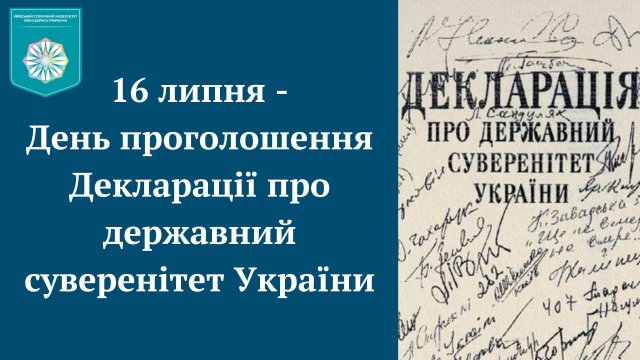 16 липня 1990 року Верховна Рада Української РСР прийняла історичний документ - Декларацію про державний суверенітет України.