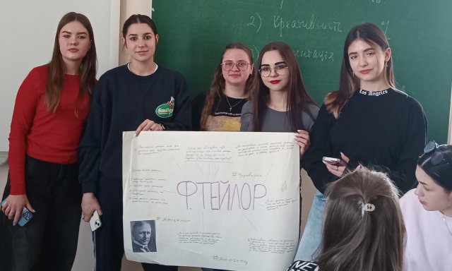 17 березня 2025 року в Центрі основ управління відбулося інтерактивне заняття з менеджменту для здобувачів першого курсу освітньої програми «Менеджмент організацій», побудоване на роботі з класичними першоджерелами управлінської думки. Ключовим елементом заняття стала групова аналітична вправа, під час якої студенти, об’єднавшись у мікрогрупи, здійснювали мозковий штурм на основі самостійно опрацьованої праці Ф. Тейлора «Принципи наукового менеджменту». Завдання полягало в критичному осмисленні й аргументованому запереченні або підтвердженні поширеного міфу про Тейлора як «батька потогінної системи» та про науковий менеджмент як форму «витонченої експлуатації».