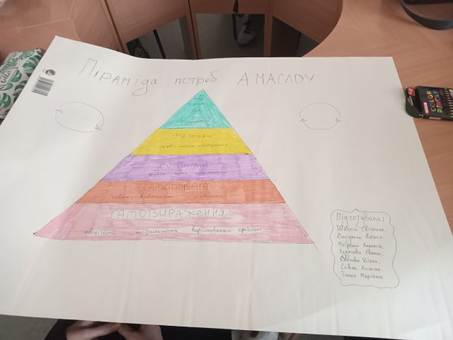 Ключовим елементом заняття став мозковий штурм у мікрогрупах, який проводився із використанням спільного Google-документа. У межах групової роботи студенти здійснювали критичний аналіз поширених міфів щодо теорії мотивації Маслоу в сучасних підручниках з менеджменту, розглядали аргументи критики цієї теорії, визначали її сильні сторони, а також обговорювали можливості альтернативного прочитання мотиваційної моделі — зокрема ідею «перевернутої піраміди Маслоу» з позицій «за» і «проти».
