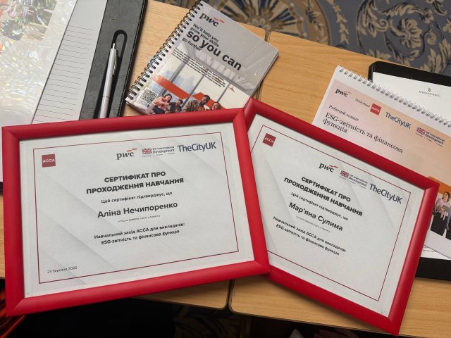 23 березня 2026 року, доцентки кафедри фінансів Аліна Нечипоренко та Марʼяна Сулима долучилися до тренінгу для викладачів від ACCA «ESG-звітність та фінансова функція». Під час інтенсиву було детально розібрано архітектуру сучасної нефінансової звітності, яка стає обов'язковою для компаній, що прагнуть бути інвестиційно привабливими.