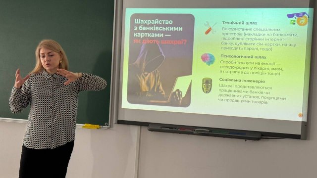 Особливу увагу було приділено використанню шахраями методів соціальної інженерії, які базуються на маніпуляції довірою, емоціями та психологічними реакціями клієнтів. У цьому контексті студентам наголошено на необхідності дотримання базових правил фінансової безпеки, зокрема недопущення передачі конфіденційної інформації (паролів, одноразових кодів, реквізитів платіжних карток) третім особам.