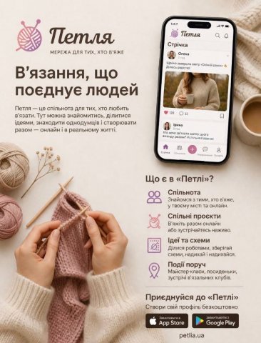 - «В’язання, що поєднує людей»: сервіс-спільнота для тих, хто в’яже, з акцентом на обмін досвідом, спільні проєкти та офлайн-зустрічі;