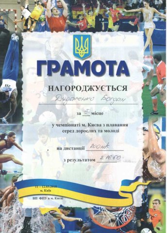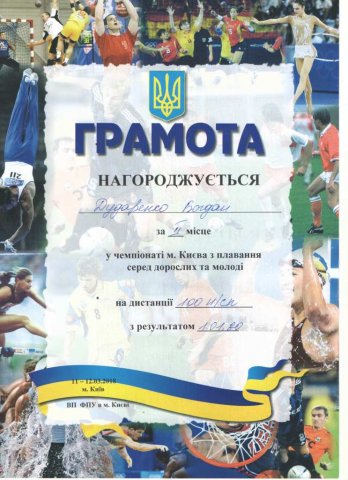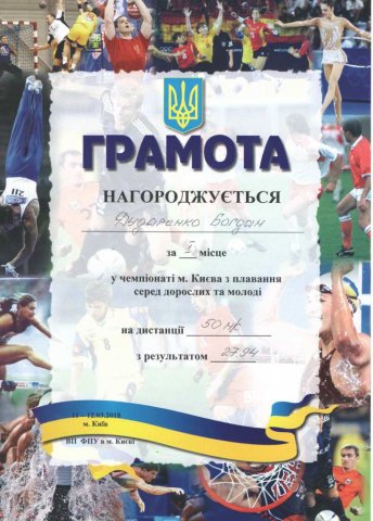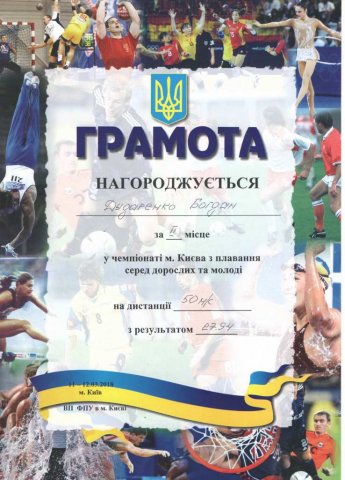 11-12 березня 2018 року студент І курсу спеціальності «Менеджмент» Дударенко Богдан брав участь у чемпіонаті міста Києва з плавання серед дорослих та молоді. На чемпіонаті спортсмен виборов дві золоті медалі в запливі на відстань 50 та 200 метрів на спині, три срібні медалі – в запливі на відстань 50, 100 та 200 метрів на спині та одну бронзову медаль – на відстань 100 метрів на спині.