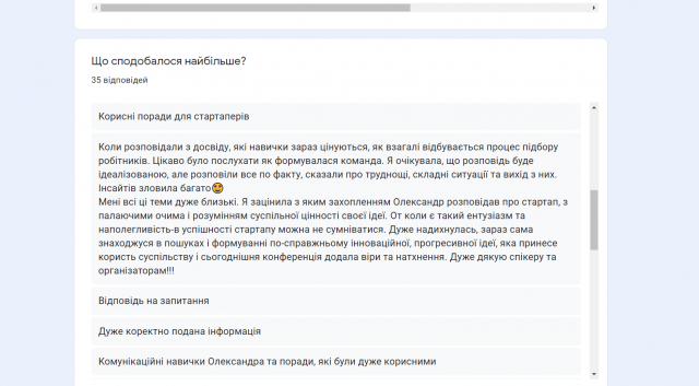 Дякуємо усім учасникам за ваші відгуки – вони підтверджують правильний напрямок обраного нами курсу у напрямку #РОЗВИТОКСТУДЕНТСЬКОГОПІДПРИЄМНИЦТВА та є надзвичайними мотиваторами для прогресивного розвитку та організації подібних івентів у майбутньому!