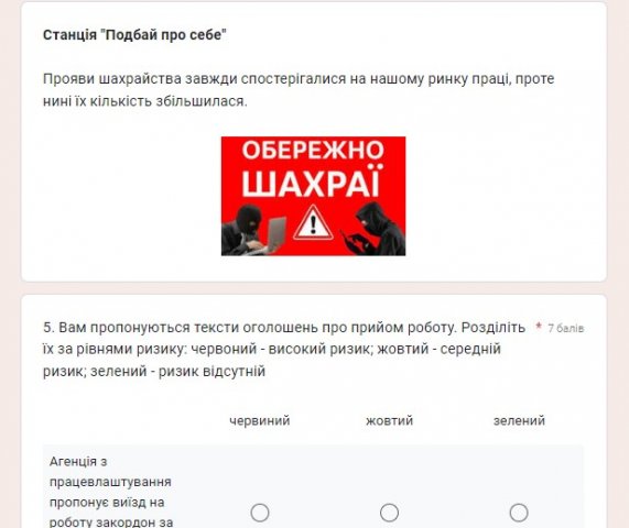 | Дослідницька | Конкурс студентських наукових проектів, виступи на наукових конференція, наукові публікації, написання есе з елементами дослідницької роботи |